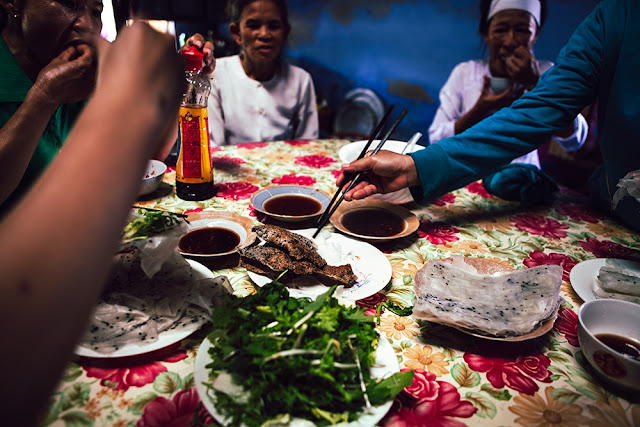 Eating lunch, rice paper and herbs, with nuns from a small monastery in Phan Rang - Thap Cham
